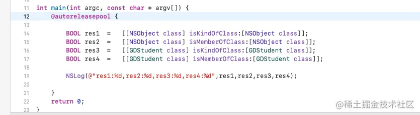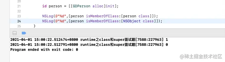 这个是调用- (BOOL)isMemberOfClass这个方法,所以上面的结果应该是很清晰,因为person的isMemberOfClass就是GDPerson