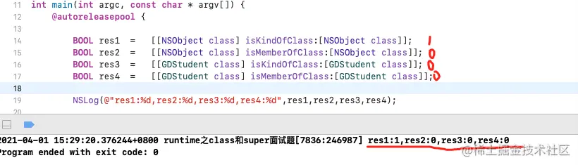 [[GDStudent class] isKindOfClass:[GDStudent class]];这个右边也不是元类对象,所以返回是0