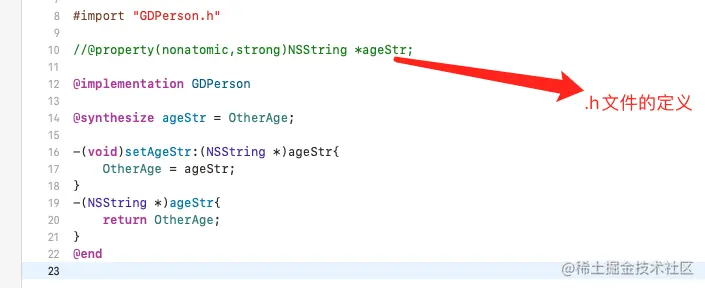 @synthesize: 修改变量名字,自动生成set和get并赋值.在以前的版本是没有自动生成set和get方法,往往定义一个变量,我们需要加这个东西,现在很少用,请看下面的代码: