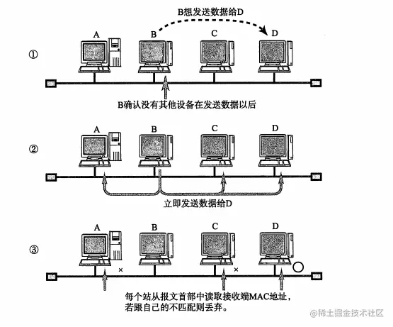 网络接口 (以太网驱动)的处理主机收到以太网包以后,首先从以太网的包首部找到MAC地址判断是否为发给自己的包。如果不是发给自己的包则丢弃数据。