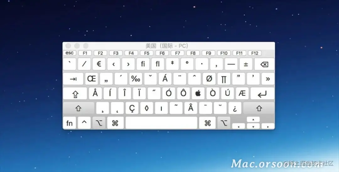 2. 分别按下option、option-shift,即可看到对应字符