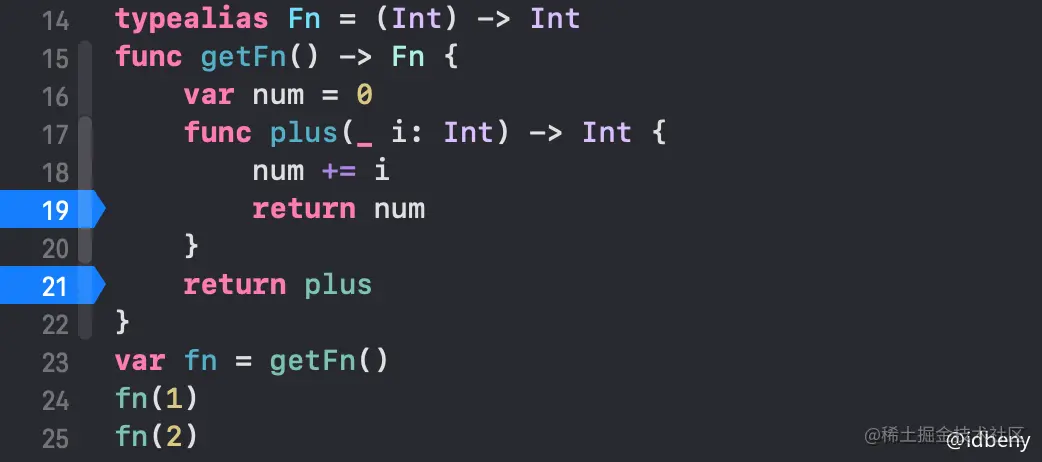 - 编译器会自动推断闭包表达式中参数类型和返回值类型。