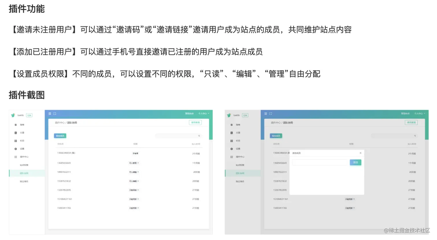 可以邀请多人一起为站点贡献内容,比如可以把撰稿、编辑、校对和审核的工作交给不同成员,各司其责,构建准确严谨的产品在线手册。