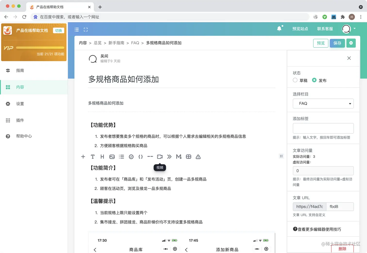 文章分类:将同类型的操作说明放在一起,方便内容管理的同时也便于用户的查看,最高支持8级栏目分类。