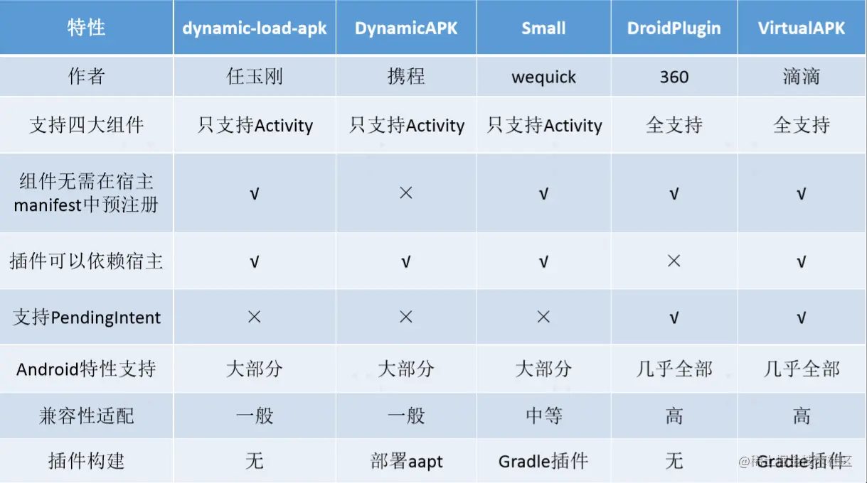 我们在选择开源框架的时候,需要根据自身的需求来,如果加载的插件不需要和宿主有任何耦合,也无须和宿主进 行通信,比如加载第三方 App,那么推荐使用 RePlugin,其他的情况推荐使用 VirtualApk。
