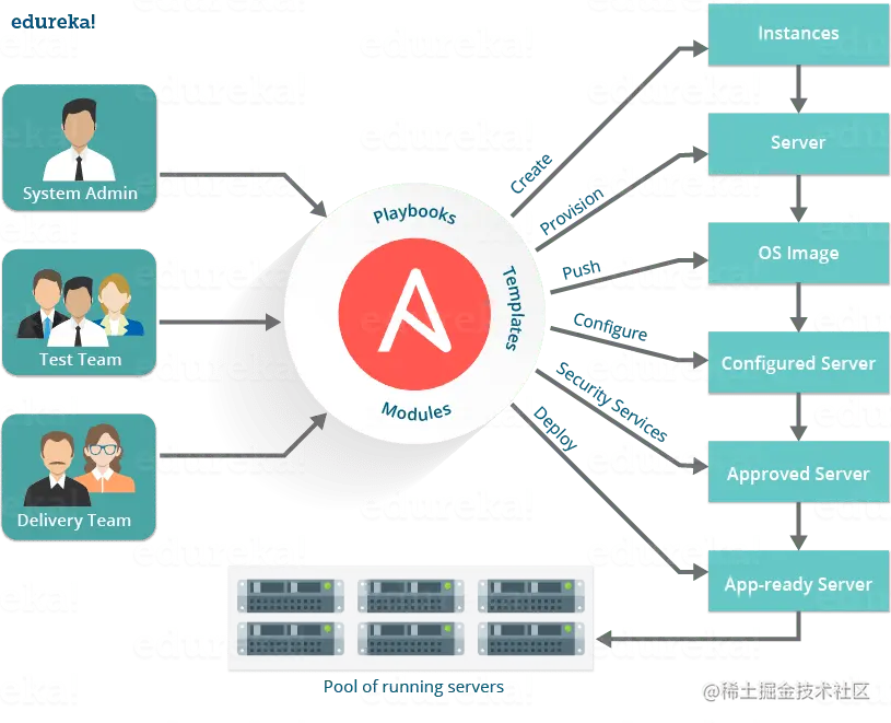 现在让我们讨论 Ansible 如何管理整个 DevOps 基础设施。当开发人员开始将基础设施视为其应用程序的一部分时,即将基础设施即代码(IaC),稳定性和性能就成为规范。基础设施即代码是通过计算机可处理的定义文件(而不是物理硬件配置或使用交互式配置工具)来管理和供应计算基础架构(流程、裸机服务器、虚拟服务器等)及其配置的过程。在这方面 Ansible 自动化发挥了重要作用,并在同行中脱颖而出。