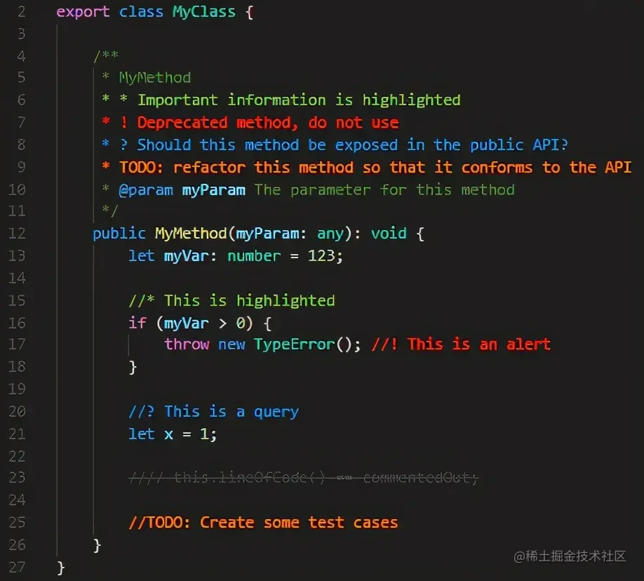 这是一个让你能更好地编写注释的工具,它能根据关键词用不同的颜色高亮代码片段。支持以下类型的高亮: