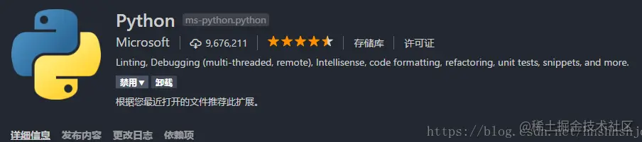 首先当然要推荐这个必备插件python了,提供了代码分析,高亮,规范化等很多基本功能,装好这个就可以开始愉快的写python了。