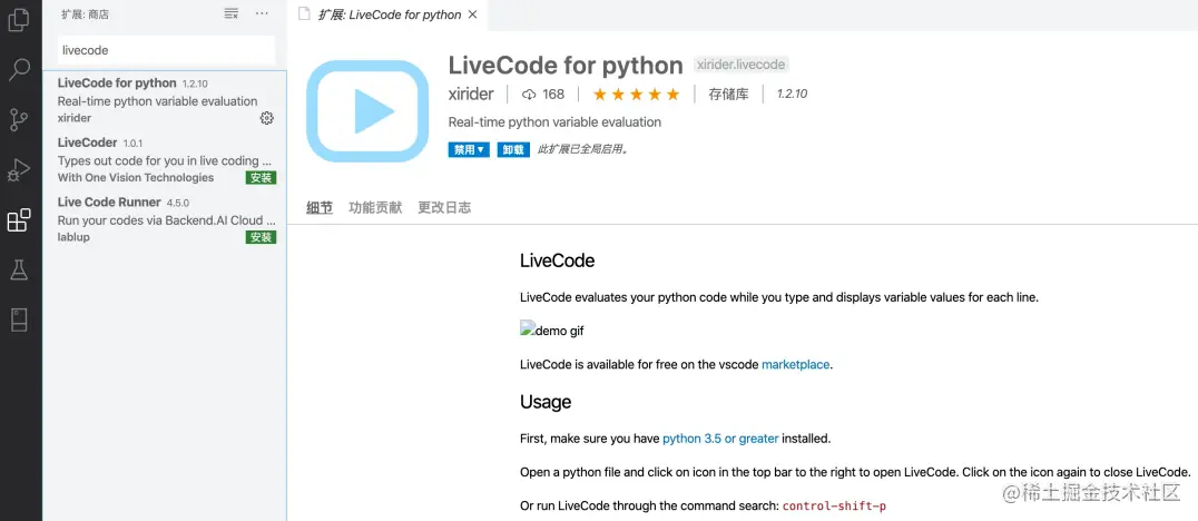 和其他的插件安装一样,在商店搜索livecode点击安装即可