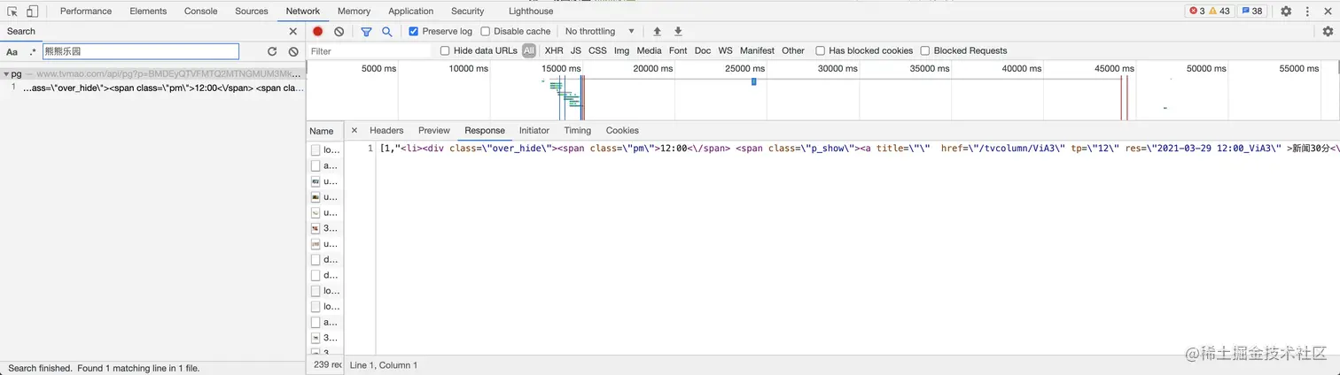 我们在控制台的请求中,搜索网页中的关键字"熊熊乐园",害,果不其然,还真搜着了。