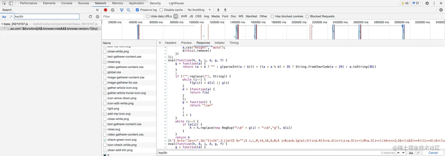 不知少侠可知搜索功能,你看上面的js中有keyStr这个关键字,咱不妨搜索一波。