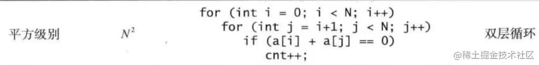 再比如时间复杂度O(n^2),就代表数据量增大n倍时,耗时增大n的平方倍,这是比线性更高的时间复杂度。比如冒泡排序,就是典型的O(n^2)的算法,对n个数排序,需要扫描n×n次。