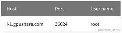 从登陆指令中提取登陆的 主机名、端口号和用户。如 ssh -p 36024 root@i-1.gpushare.com,提取后的信息如下: