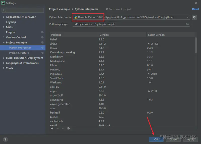 解析器已经切换为了刚配置的远程解析器,点击 OK 开始同步,等待下方状态栏完成配置与同步。