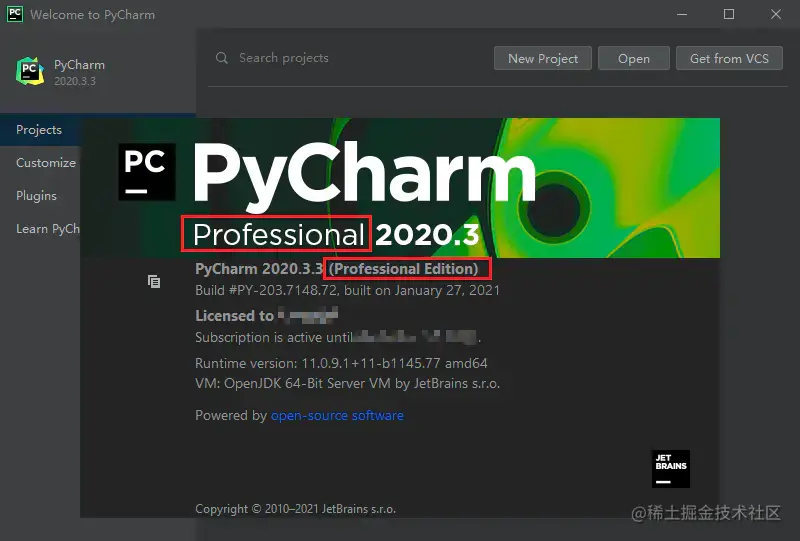 注意哦,只有Professional版本才支持远程开发功能,从菜单中的 Help - About可以查看当前安装的版本。
