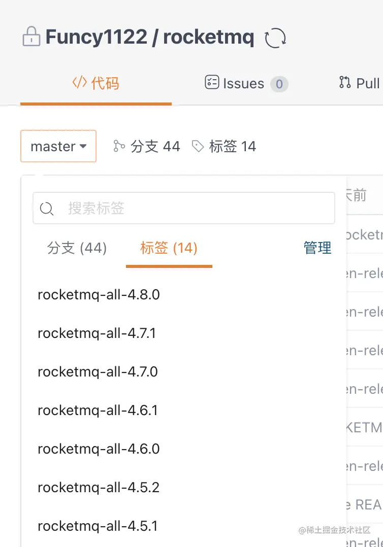 checkout源码到本地后,默认是master分支,本人习惯基于tag创建自己的分支,然后在自己的分支上进行分析,rocketMq的tag如下: