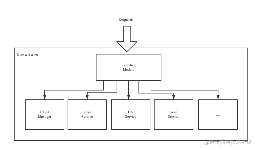 BrokerServer:Broker主要负责消息的存储、投递和查询以及服务高可用保证,为了实现这些功能,Broker包含了以下几个重要子模块:Remoting Module:整个Broker的实体,负责处理来自clients端的请求。Client Manager:负责管理客户端(Producer/Consumer)和维护Consumer的Topic订阅信息Store Service:提供方便简单的API接口处理消息存储到物理硬盘和查询功能。HA Service:高可用服务,提供Master Broker和Slave Broker之间的数据同步功能。Index Service:根据特定的Message key对投递到Broker的消息进行索引服务,以提供消息的快速查询。