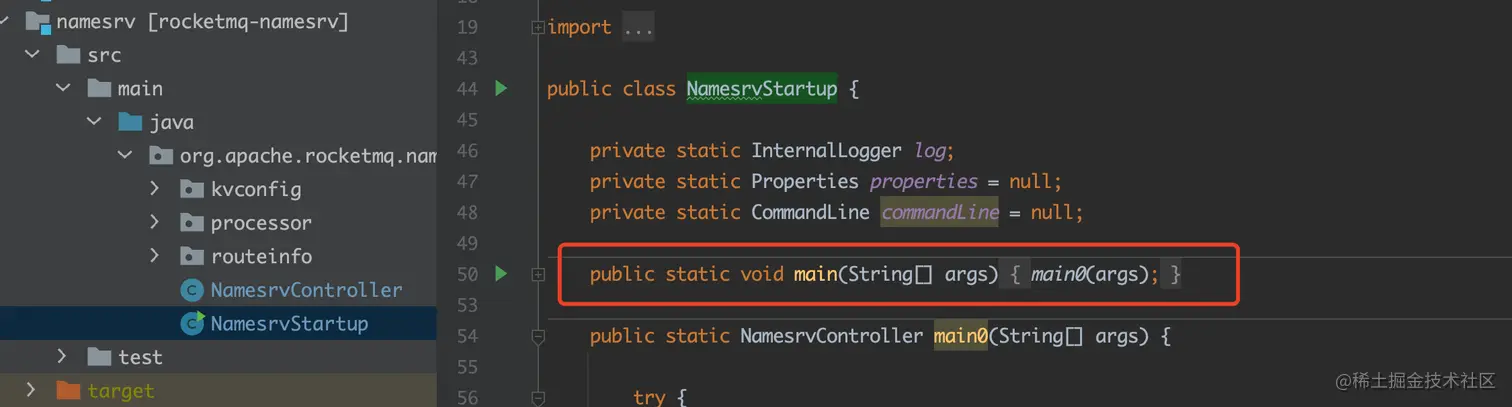 nameServer的主类为org.apache.rocketmq.namesrv.NamesrvStartup:
