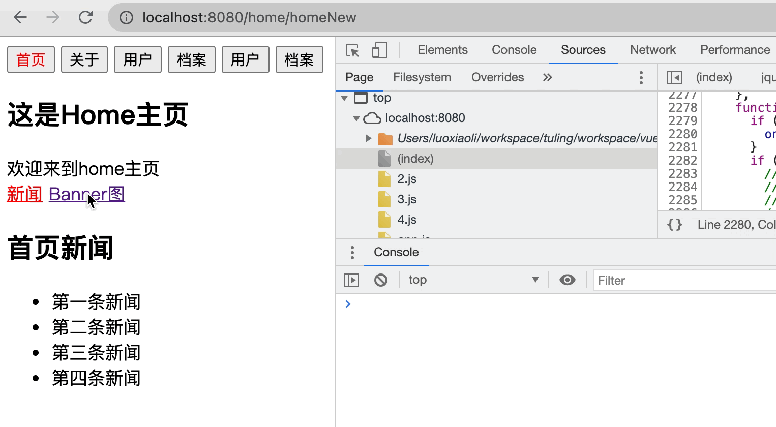 我们有首页, 关于, 用户, 档案. 首页下面有两个按钮[新闻],[消息] 当点击首页的[消息], 然后切换到关于页面, 再回到首页的时候, 我们希望能够继续展示[消息]的内容 默认是不会保留操作的记忆的. 下次回来直接到[首页->新闻], 使用keep-alive就可以有保留记忆的效果了