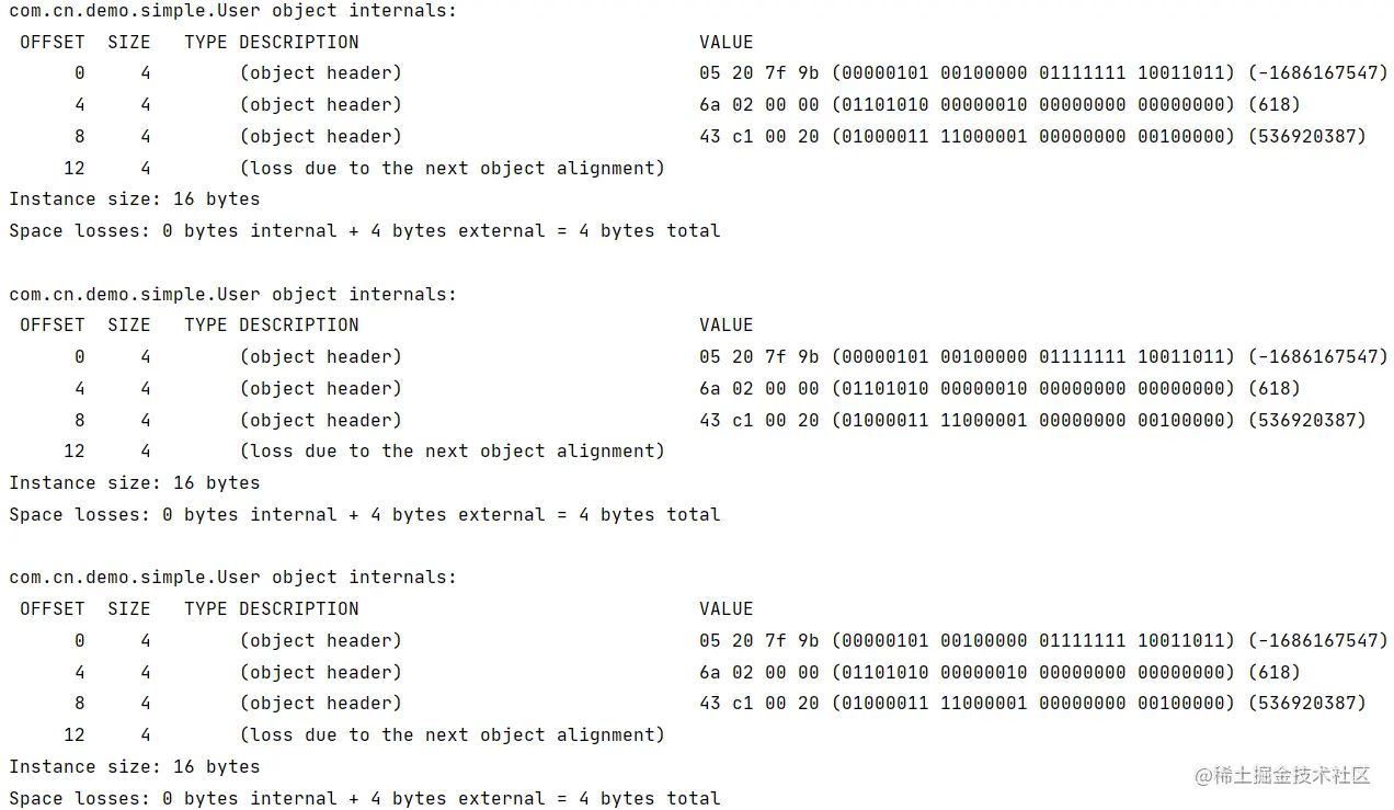 System.out.println("--END--:"+ClassLayout.parseInstance(user).toPrintable());