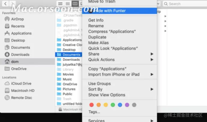 Funter集成到Finder应用程序中,并将其自己的命令添加到上下文菜单中。