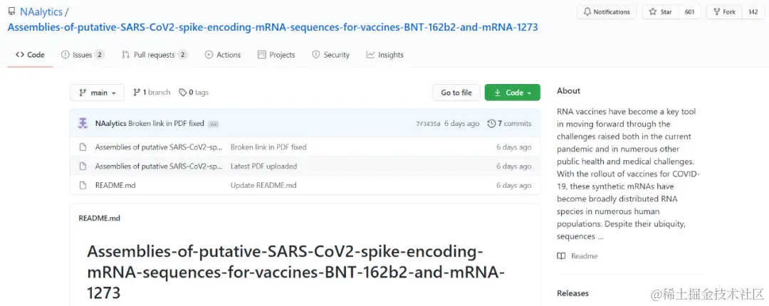 研究团队还表示,他们并没有对疫苗进行逆向工程,只是「公布了两种合成 RNA 分子的假定序列,它们在 2021 年的医学和人体生物学大环境中已经变得非常普遍」。