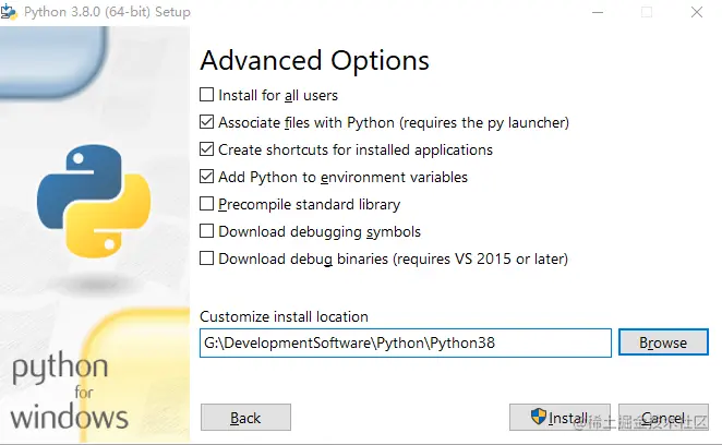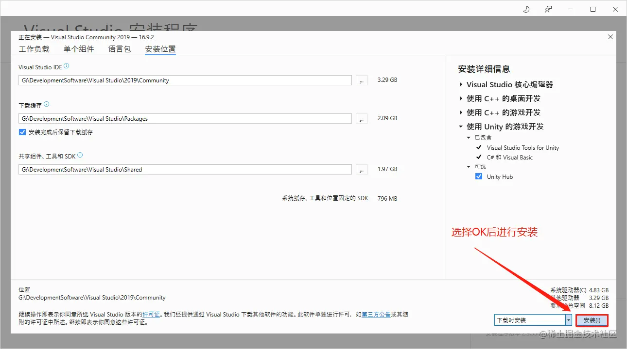 - 默认勾选,自定义安装目录,然后Install进行安装