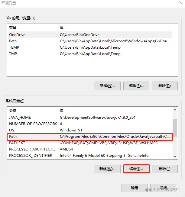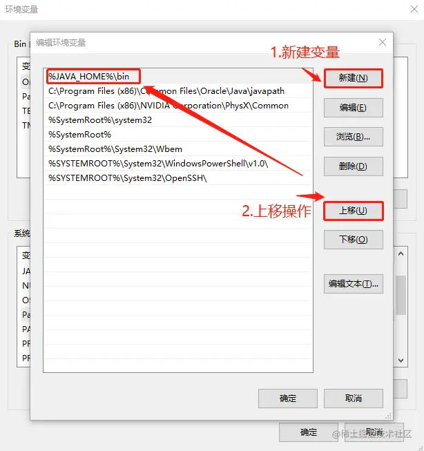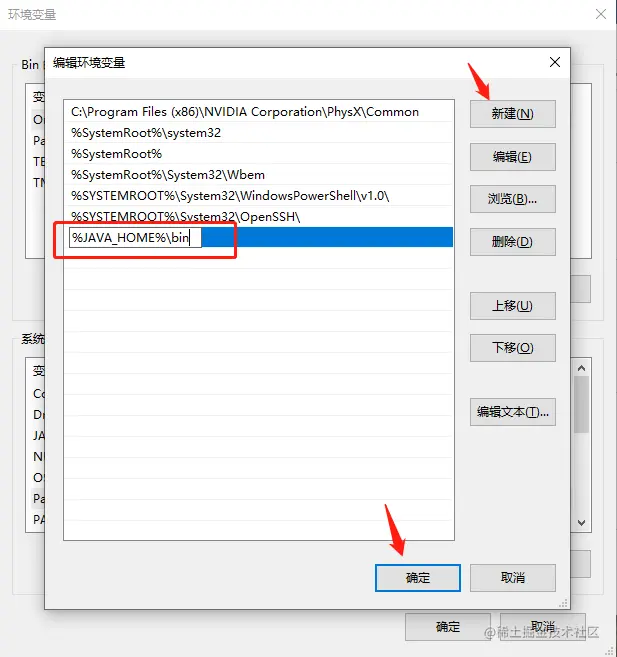 - 点击新建,输入%JAVA_HOME%\bin,然后确定