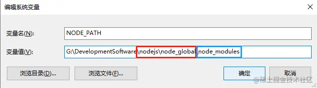 变量值为:G:\DevelopmentSoftware\nodejs\node_global\node_modules