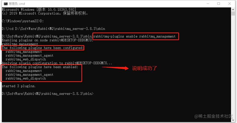 进入cmd,分别输入下面3个命令,如下图所示就成功了
