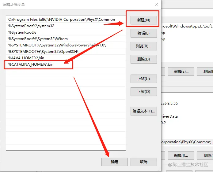 - 编辑Path系统变量,新建%CATALINA_HOME%\bin