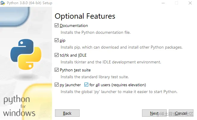 - 全部默认勾选,直接Next