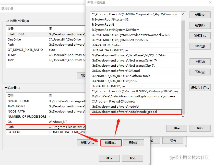 如果是已经有值为C:\Users\xxx\AppData\Roaming\npm的变量,那么直接修改它的值为node_global文件夹的路径