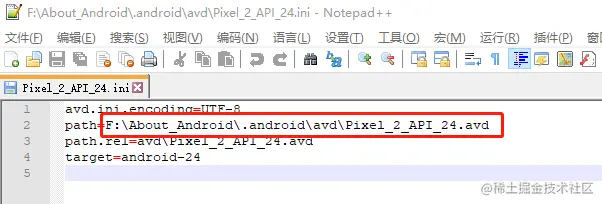 这里我就以Pixel_2_API_24.ini举例,修改下Path就OK了