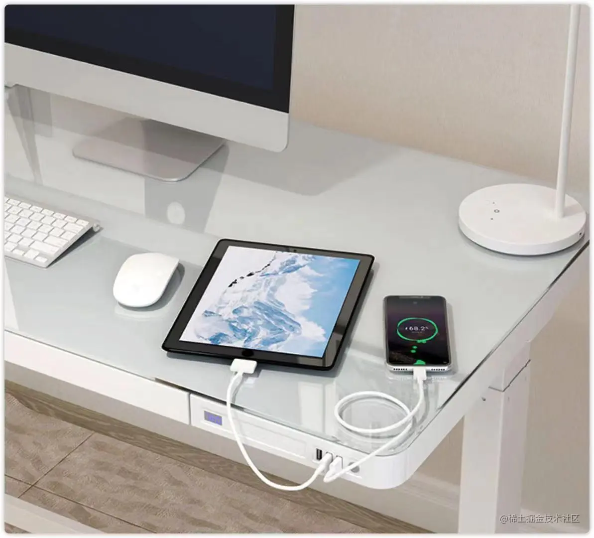 又或者采用站立式办公,养成更健康的工作习惯。另外面板上还有快充充电口,配合桌面底下的线材收纳设计,让平日工作中心桌面可随时保持整洁和极简观感。