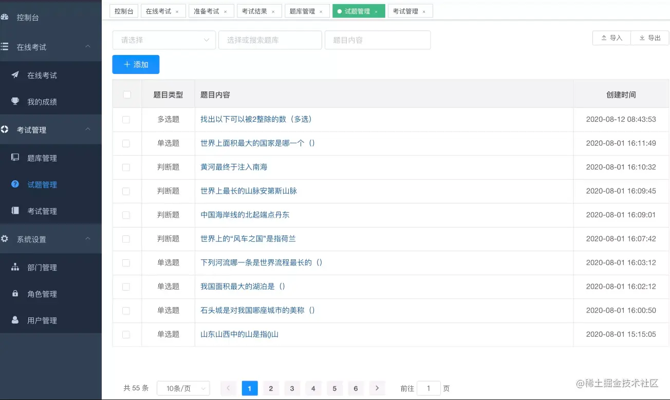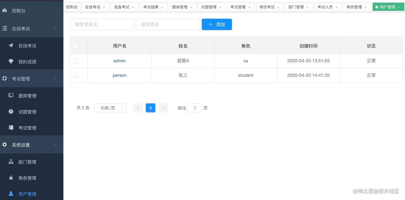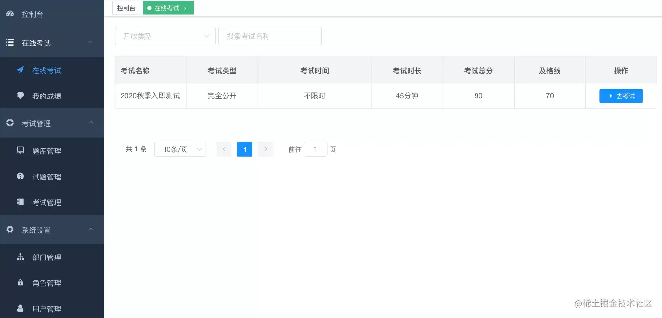 今天小编推荐一款基于SpringBoot+Vue开发的考试系统,系统集成了用户管理、角色管理、部门管理、题库管理、试题管理、试题导入导出、考试管理、在线考试、错题训练等功能,考试流程完善。可用于简单的考试或进行二次开发!