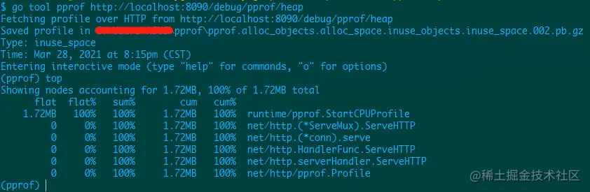 大家发现没,其实与上面 runtime/pprof 在命令行交互时是一样的操作,可以参考上面的字段参数说明。