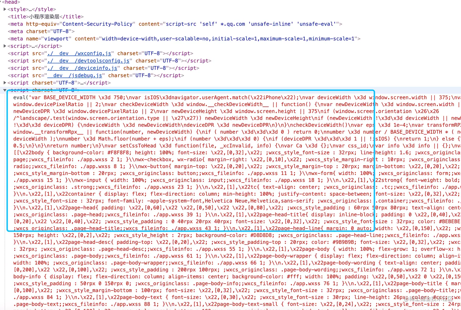 wxss 生成的主要是渲染层 eval()这一坨代码
