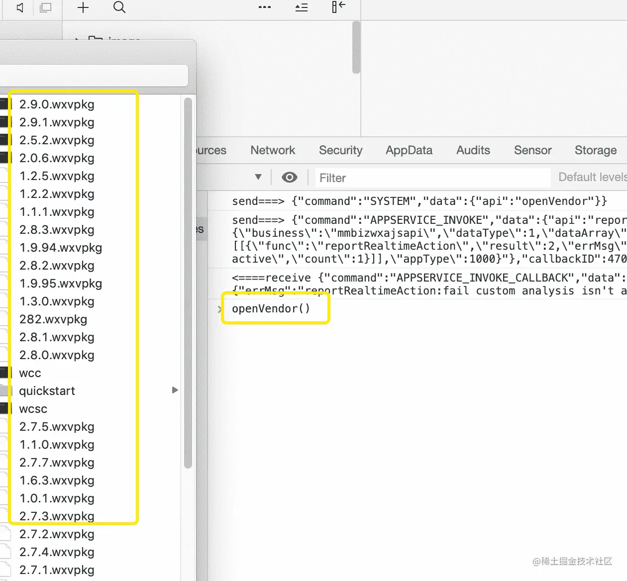 .wxvpkg 包里面这个基础库文件的 WAWebview.js 和 WAService.js,对应这两个 webview 里面的 js 引用你可以仔细观察下.wxvpkg 文件解包后的格式: