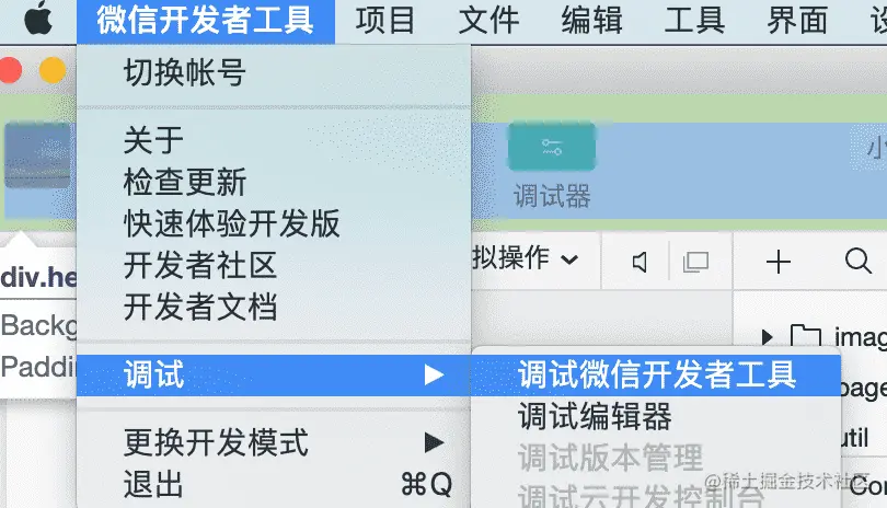 我们第一步还是打开:微信开发者工具–>调试–>调试微信开发者工具