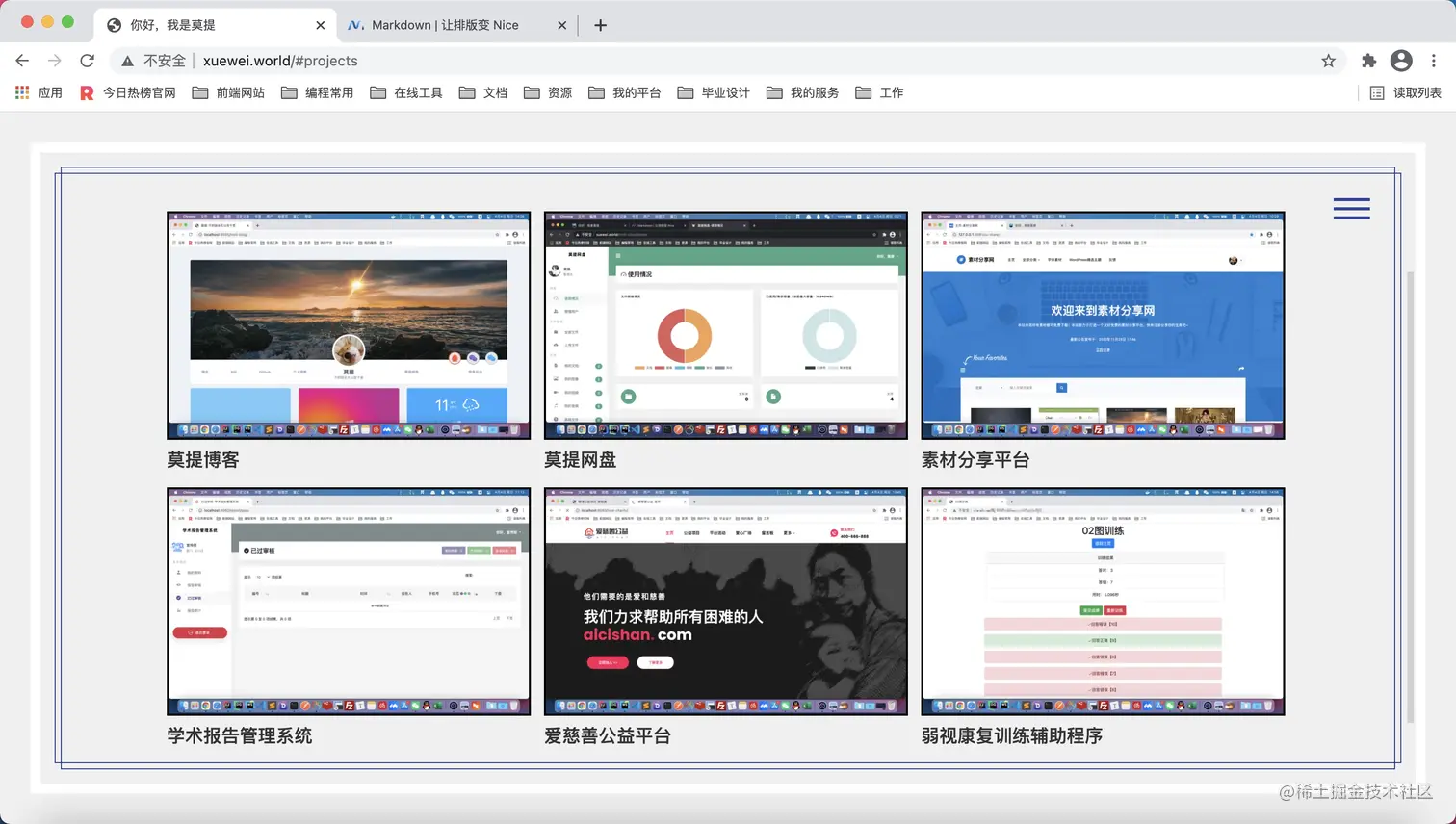 之后我就把我之前写过的好几个还不错的项目部署了上去!然后连夜做了一个个人主页。