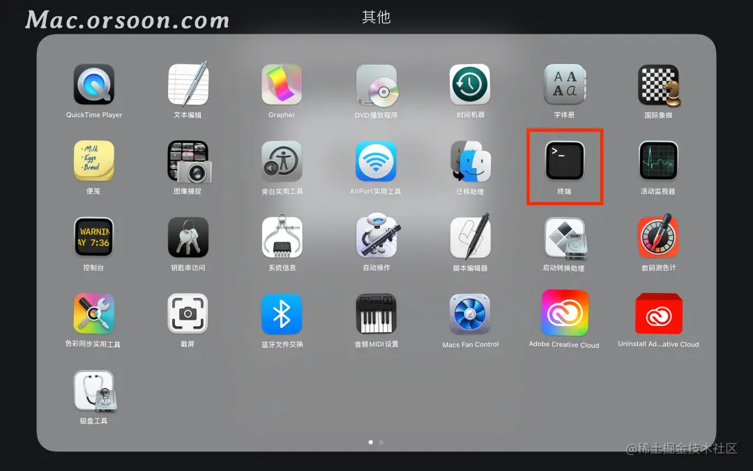 ❶ 打开启动台→其他→终端;