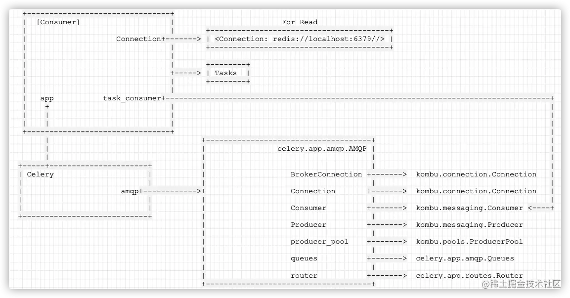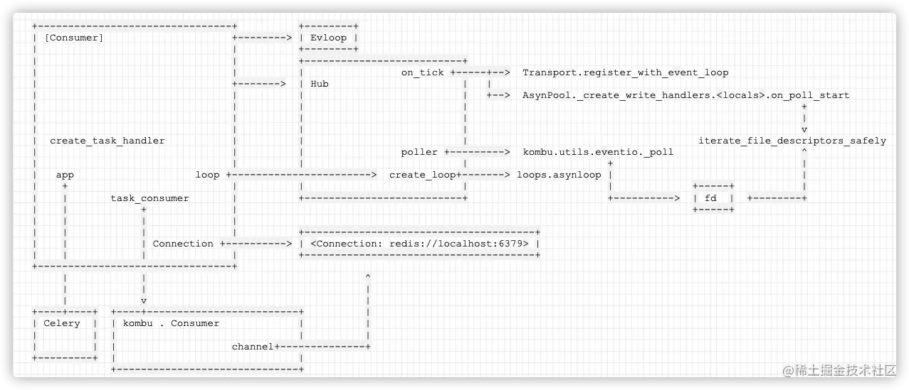注意这里用到的为 self.task_consumer,即 kombu . Consumer,也配置了c.connection进去。