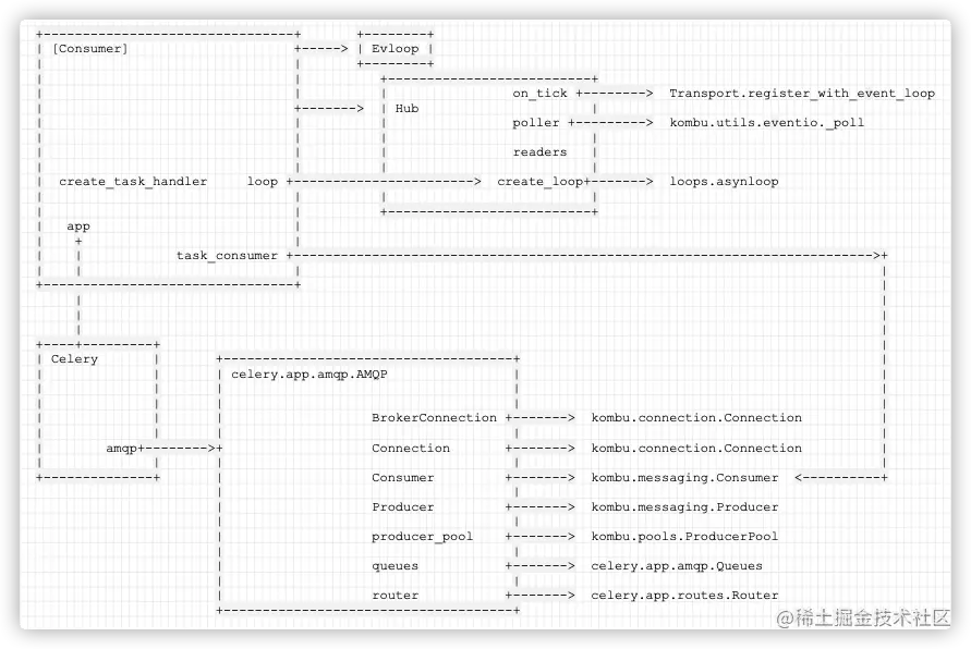 我们已经知道,Kombu实现了Producer与Consumer两个概念。因此我们可以推论,在Celery的实现中,必然使用到Kombu的 Producer与 Consumer。