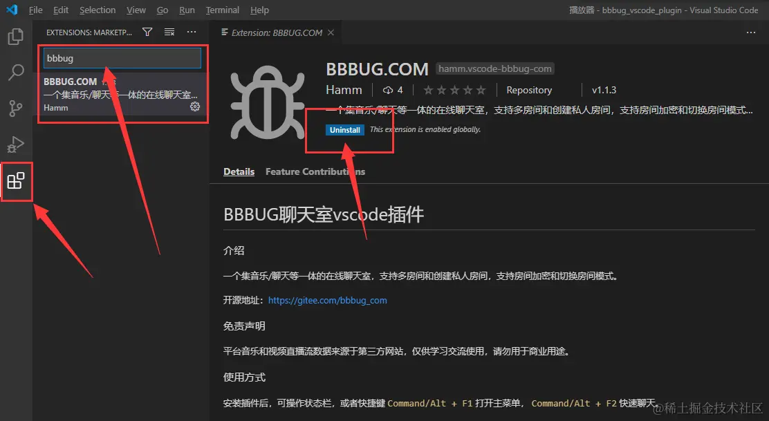 1. 在Visual Studio Code插件平台搜索 BBBUG 等关键词,找到下面的插件: