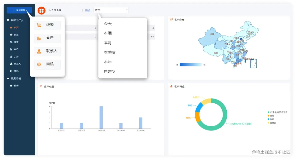 - **数据中心:**可以通过配置轻松实现数据透视图展示,数据统计、数据可视化图表开发等等功能。