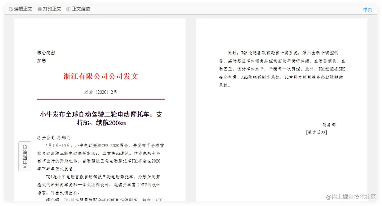 - **国标版式公文:**拥有GB/T 9704-2012(党政机关公文格式)标准版式公文模板,无需加载任何插件和控件,支持OA移动端编辑。