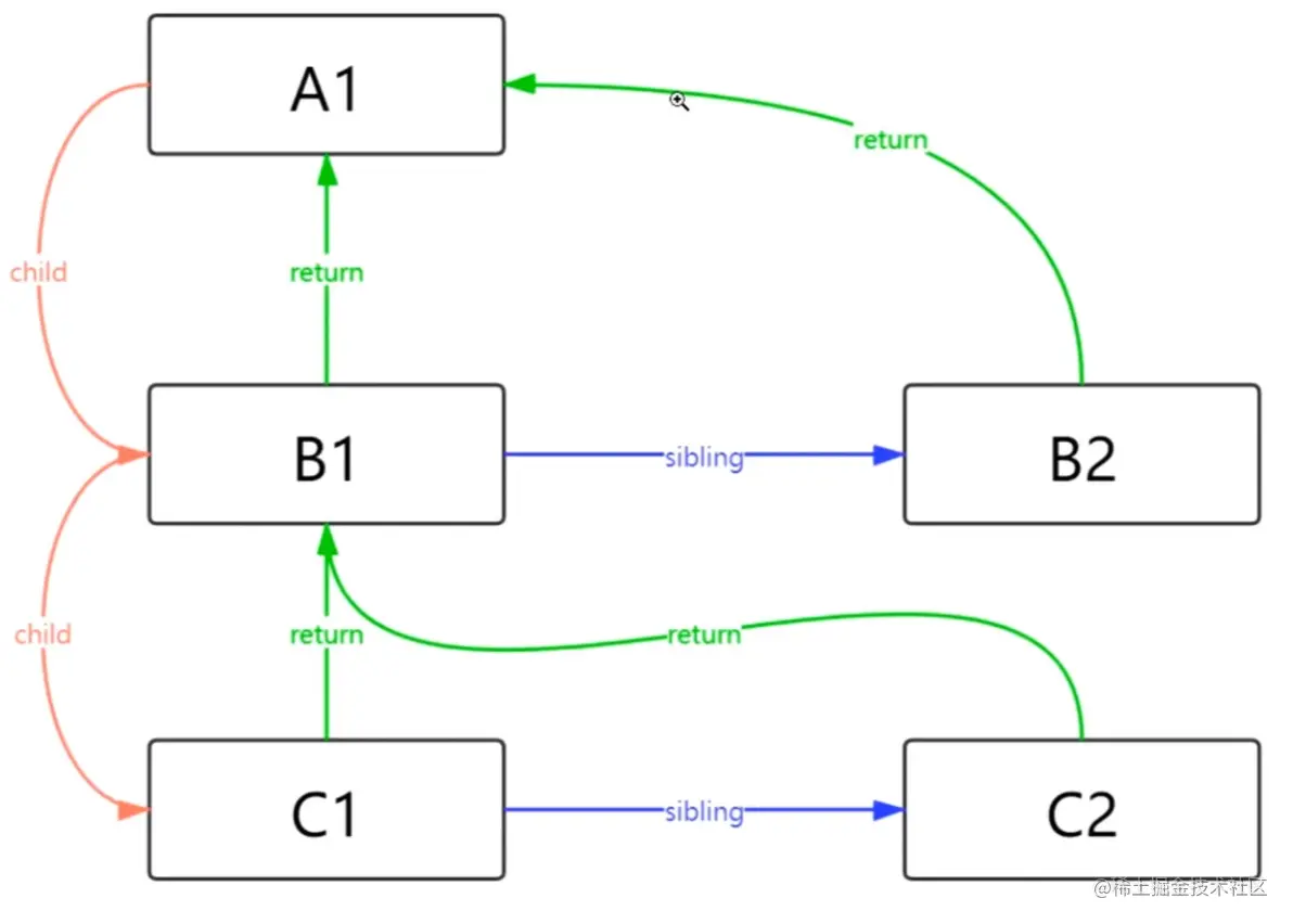 this.sibling = null; // 表示当前节点的兄弟节点 每个fiber有且只有一个属性指向隔壁的兄弟节点