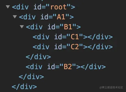 jsx标签化是嵌套的结构,如代码所示,最终会编译成递归执行的代码,要想中断递归是很困难的。即react16之前的调度器为栈调度器,栈浅显易懂,代码量少,但不能随意break掉,continue掉,要维护一系列的栈上下文;