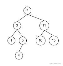 根据上面二叉查找树的定义,我们不难画出下面的二叉查找树。可以看到根节点的 7 元素,大于左边的 3 元素,小于右边的 11 元素。而左右子树 3、11 也同样符合这样的规律。